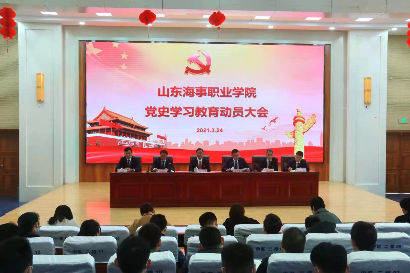会上,党委副书记、常务副校长徐立清传达了中共中央《关于在全党开展党史学习教育的通知》文件精神、全省教育系统党史学习教育动员大会主要精神,带领大家共同学习习近平总书记在党史学习教育动员大会的重要讲话精神,深刻阐释了在全党开展党史学习教育的重大意义,进一步明确了党史学习教育的目标要求。党委委员、副校长宋志刚宣布《山东海事职业学院党史学习教育方案》。对学校党史教育活动的指导思想、目标要求、重点学习内容、活动安排等方面进行了部署,学校的党史学习教育贯穿2021年全年,分三个阶段展开,有效巩固“不忘初心、牢记使命”主题教育成果,确保党史学习教育取得实效,突出学习教育常态化。突出学党史、悟思想、办实事、开新局,注重融入教育教学工作日常、抓在经常。