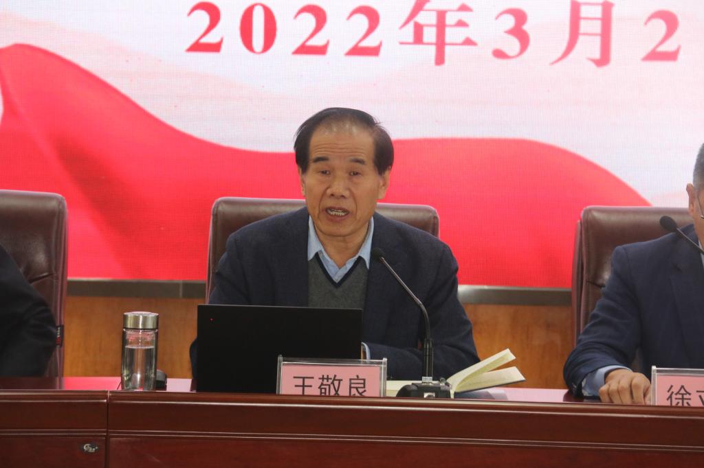 随后,校长王敬良做重要讲话。王校长肯定了2021年学校在党建工作、教学科研成果、办学条件、社会服务等方面取得的成果。同时对标全省兄弟先进院校,学校在众多领域还存在很大差距。王校长指出,2022年是我们国家实现“十四五”规划的“关键之年”,也是我校创新发展、实现我们“十四五”事业发展规划的“关键之年”。我们要进一步统一思想,凝心聚力,攻坚克难,乘势而上,布新局,开新篇,加强作风建设,全力抓好“安全和发展”两件大事。一方面我们要“提高政治站位,强化责任担当,确保校园安全稳定”:为党的二十大胜利召开营造安全稳定的校园环境;切实加强师生员工、特别是学生的人身安全工作;总结以往经验教训,加强完善个别学生投诉问题管理处置机制,加强舆情管控工作。另一方面我们要“深化改革,推进创新,抓住重点,培育亮点,实现‘关键之年’新发展 ”:继续深化学校办学质量年度考核改革;深入推进内部分配制度改革;研究分析省厅2021年对全省高职院校办学质量年度考核结果和全省技能大赛获奖情况,找短板,补短板。王校长的主题讲话为学校新的一年工作开展指明了方向,提供了思路。