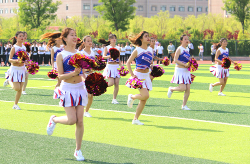 副院长李振鹏致开幕辞并宣布比赛开始,航空学院2017级空中乘务1班、2班以热情饱满、风格不羁的开场舞表演拉开大赛序幕。大赛分为广播体操项目和自选项目表演。广播体操项目的比拼中,航空学院、港航管理学院、京东·新迈尔电商学院、航海学院、国际邮轮与旅游学院、机电与信息工程学院等7支代表队依次进行了表演,同学们踏着音乐的旋律,动作整齐划一,激情高昂,热情洋溢;热情洋溢的自选项目表演中,五年制大专部的表演,充满着青春的气息,同学们跳动的舞姿如优美的乐章,让人陶醉;港航管理学院的表演,展现着五月的澎湃;机电与信息工程学院的健美操表演,宣示着力量的优美;航空学院的表演,气势高昂,优美的舞姿如绽放的花朵,伴随着动感的旋律诠释着她们青春的魅力,场上的观众们呼声不断;航海学院的表演,活力四射;最后,京东·新迈尔电商学院的表演,魅力无限,激情奔放。赛场上,学院各参赛学生队伍展现出了青春与活力、运动与健康,更是展示了当代大学生良好的职业形象和职业素养,赢得场下阵阵掌声和助威声。