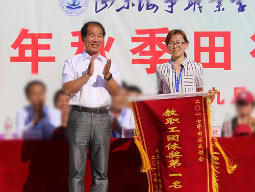 院长王敬良在闭幕仪式上致辞,代表组委会对本届运动会的圆满举办和运动员取得的优异成绩表示热烈祝贺,对为本次运动会辛劳付出的所有人表示诚挚感谢!王院长希望全院师生在今后的工作与学习中能够继续发扬运动会拼搏进取精神,紧密团结,携手同行,健身每一天,喜迎十九大,为学院各项工作更进一台阶而努力奋斗。(文化宣传处 体育部)