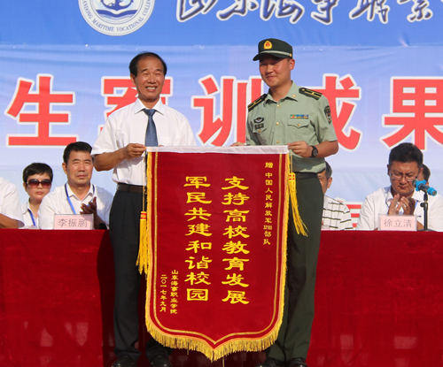 学院领导为优胜连队颁发锦旗