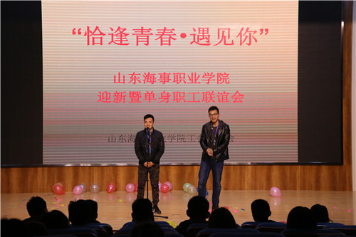 11月30日,学院工会在新图书馆报告厅举办主题为“恰逢青春·遇见你”的迎新暨单身职工联谊会。学院副院长李振鹏、工会主席仉继航及学院二级单位部门和教学院系部部分负责人出席了联谊会。 联谊会上,副院长李振鹏致辞,对近期新进教职工表示热烈欢迎,并简述了学院发展历程,带领大家展望了学院未来更好的发展。最后,李院长祝愿单身教职工能够通过此次联谊找到自己的幸福。