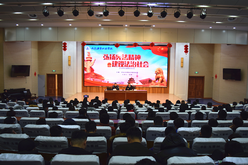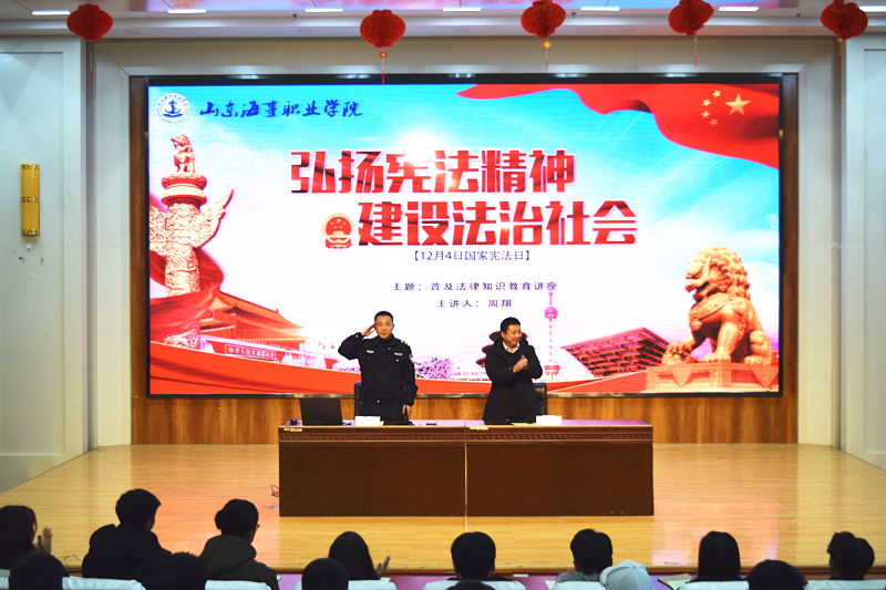 12月3日下午,为增强学生的安全意识,提高学生的法律意识,营造文明、平安、和谐、的校园与人文环境。我校特邀滨海刑警大队周翔警官在图书馆报告厅为广大同学开展了一场普法知识讲座。学校武装部、安全保卫处孟凡明处长出席并主持本次讲座,各二级学院学生代表、校学生会、社团联合会、国旗护卫队、公寓管理委员会、纠察队成员一同聆听了本次讲座。