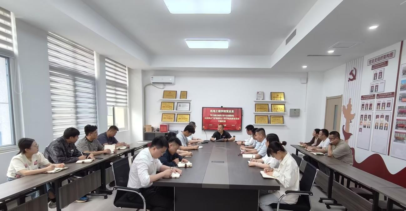 一是强化党的创新理论武装。学院党总支把学习贯彻习近平新时代中国特色社会主义思想作为党员主题党日“第一议题”、党员教育培训“第一主题”、青年理论学习“第一任务”,将贯彻落实习近平总书记关于高校教育的重要论述和重要指示批示精神作为“第一要事”,以党总支班子带头学、建立机制规范学、党员教师自主学、优化服务实践学“四学模式”为带动,及时跟进学习习近平总书记最新重要讲话重要指示精神,自觉运用党的创新理论武装头脑、指导实践、推动工作,以实际行动践行“两个维护”。重新修订了《机电工程学院党总支理论学习规则》,制定了《机电工程学院党总支理论学习2025年专题学习重点内容》。为推动党的创新理论入脑入心、落地见效,学院还构建了“党政干部+思政课教师+辅导员+专业课教师+大学生骨干”共同育人的创新理论宣讲机制,组建了由学院领导、思政课“标兵”和“能手”、青年骨干教师、辅导员以及大学生党员等,共计20余人的理论宣讲队伍。2025年上半年学院组织全体党员开展理论学习6次,在微信群、公众号等新媒体平台推送思政教育、理想信念、榜样引领等相关内容43条。