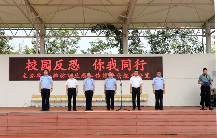 近日,由潍坊市滨海区公安分局举办的“校园反恐·你我同行”主题宣传活动在我校举行。潍坊市、滨海区两级反恐办有关负责同志,学校党委副书记、执行校长徐立清以及山东潍坊海洋科技大学园师生代表200余人参加活动。