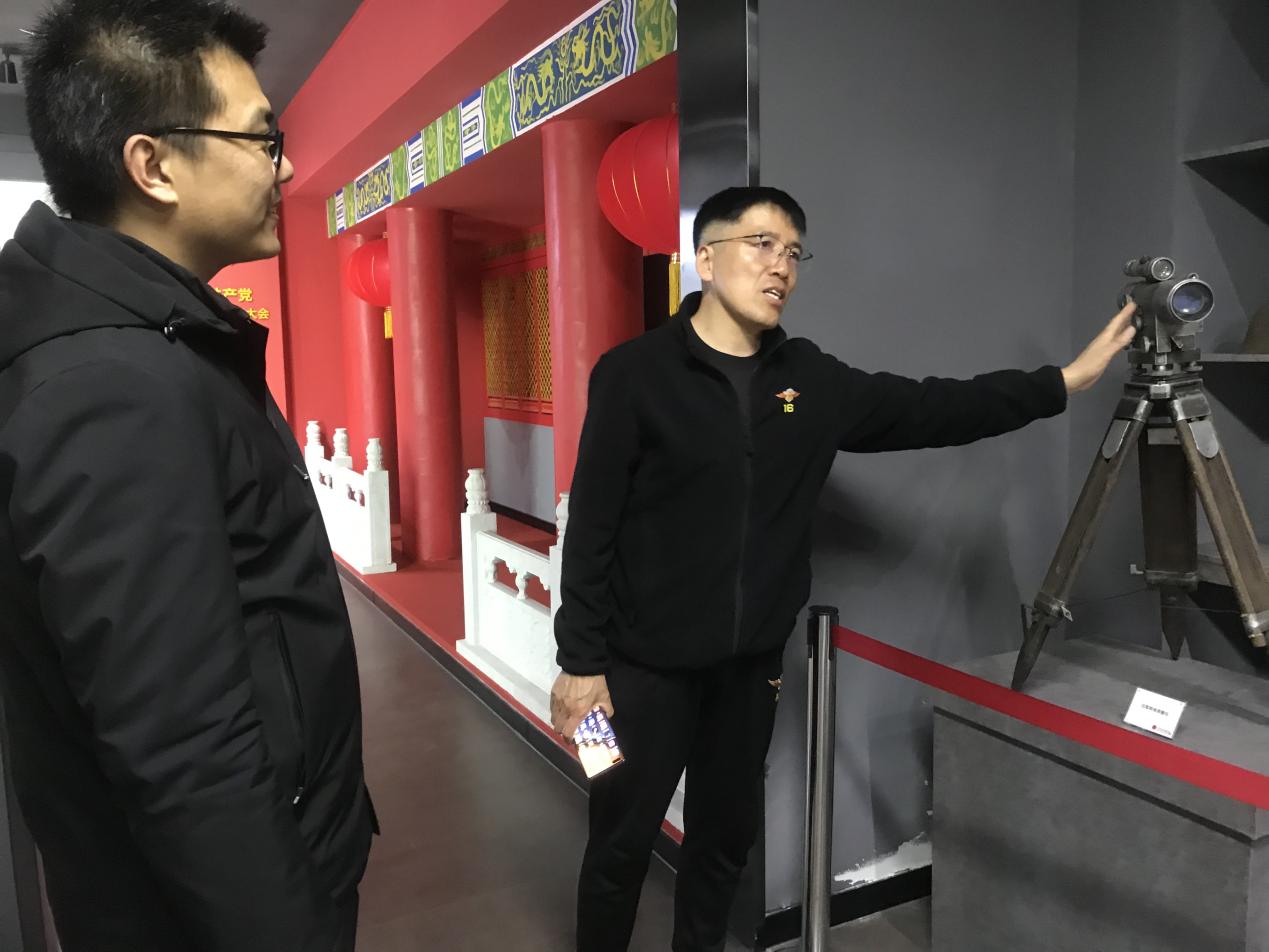 下午3时许,一行人来到了位于昌邑市龙池镇的全武红色博物馆,进入红色博物馆,在毛主席塑像前,全体人员庄严肃立并三鞠躬,随后,王全武馆长一边带领党员同志们参观馆藏文物一边为参观人员讲解文物历史。参观过程中,部分党员还亲身体验了军用手摇报警器和其他藏品。